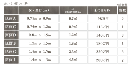 ※上記は使用する土地を借りる権利費用で、他墓石費用がかかります