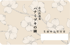 ご家族やご親族がご不在なお申込者の方にも万一の時に備えた、財布にお入れ頂く永代供養墓ハナミヅキの碑「生前申込カード」をお渡し致します