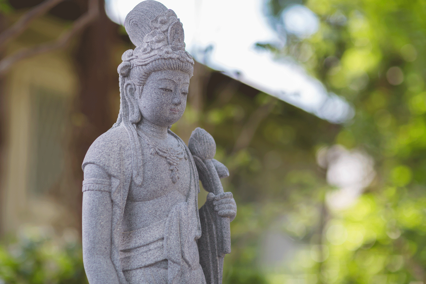 愛知県岡崎の仏師にお彫り頂いた像高3尺の聖観世音菩薩さまです。安らかなお顔で故人様とお参りの方々をお見守り頂きます