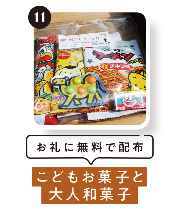 甘茶を誕生仏にかけてお釈迦さまの誕生日を祝ってくれた方へは、お寺からの御礼として子どもにはお菓子の詰め合わせ、大人には甘茶飴を無料で配ります。