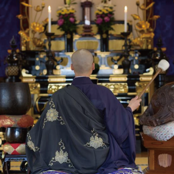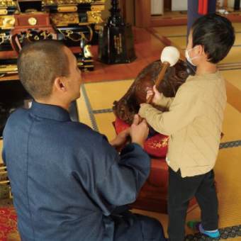 お坊さんが行う法要を体験!受付先着順(10名・大人同伴可)。体験者にはガチャコインが1枚もらえるよ。