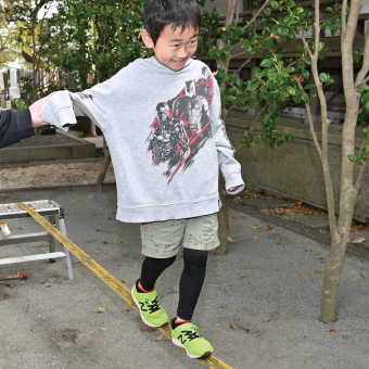 お寺の境内にスラックラインを設置!身体をととのえることは心をととのえることに繋がります。