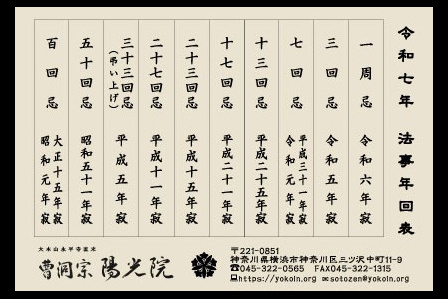陽光院の宗派は曹洞宗です。他寺院や他宗の戒名をお持ちでも法要は勿論お請け可能ですが、各儀礼作法は曹洞宗作法にて行います。また、他寺院檀家の方で遠方などの理由で陽光院にて行いたいという方は、必ず菩提寺の了承を得て下さい。